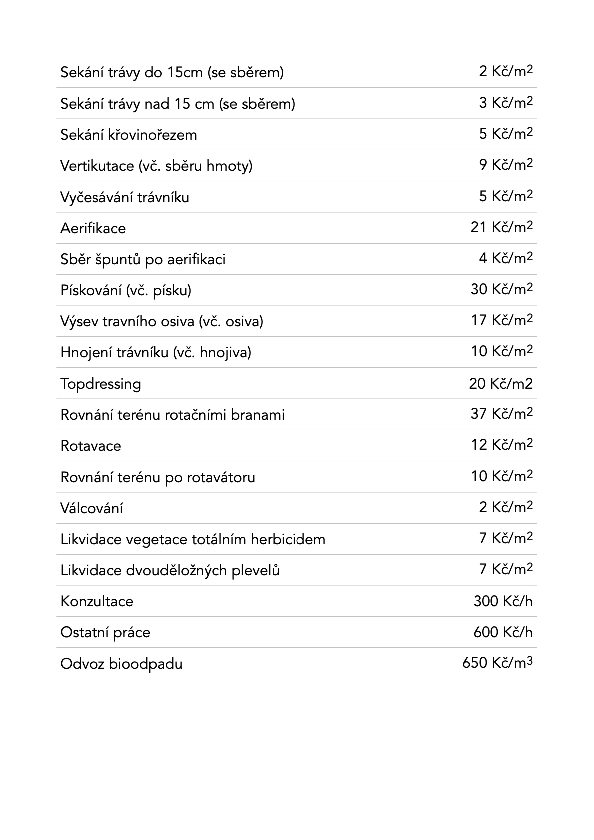 Přenechte starosti s péčí o zahradu nám a užívejte si svůj volný čas. Nabízíme pravidelné sečení, vyvážené hnojení a komplexní péči, která vašemu trávníku zaručí trvale reprezentativní vzhled po celý rok.